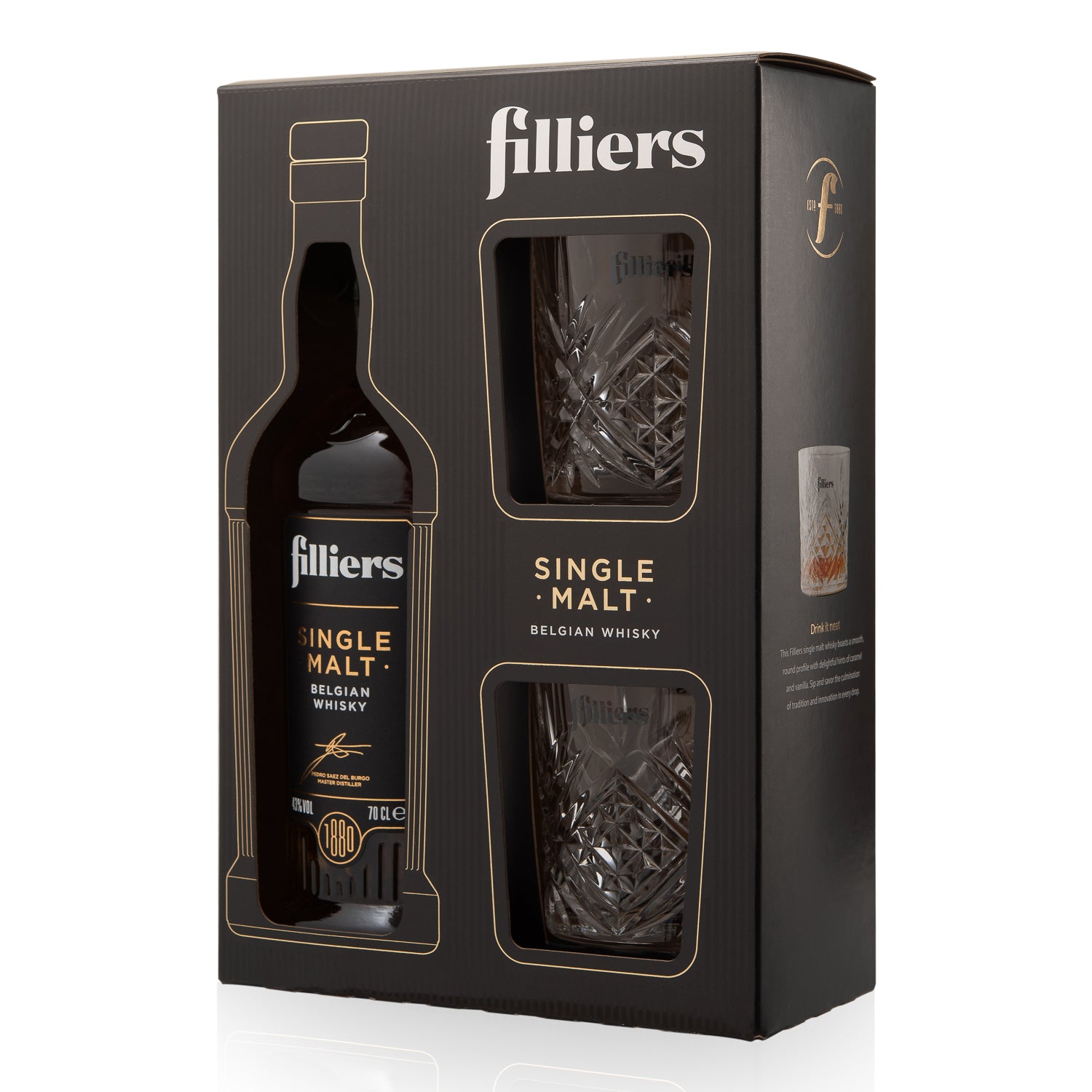 Filliers Single Malt Belgian Whisky Gift Set with Glasses 70cl